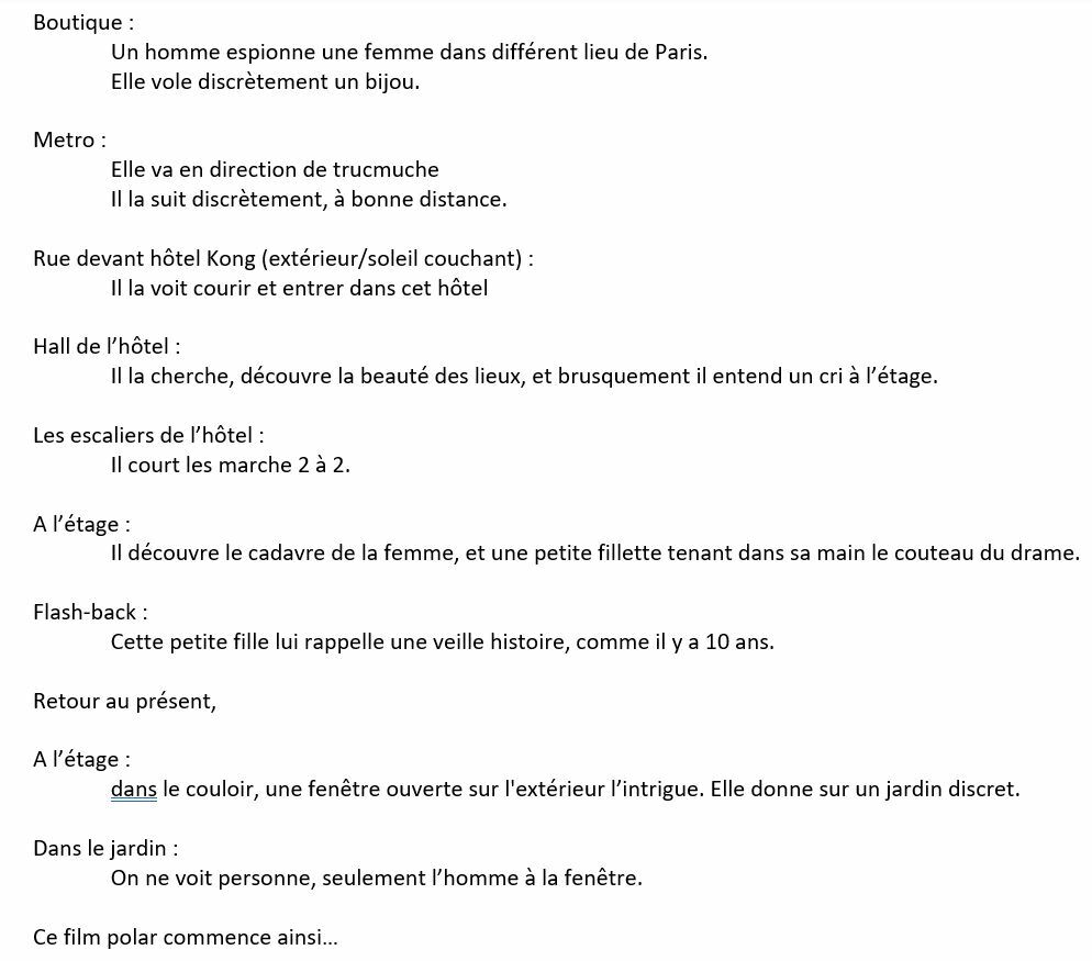 c'est le listing des différentes séquences (une unité de temps, de lieu, d'action, de lumière, de son.)