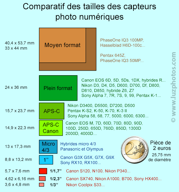 Voici les différentes tailles de capteur :