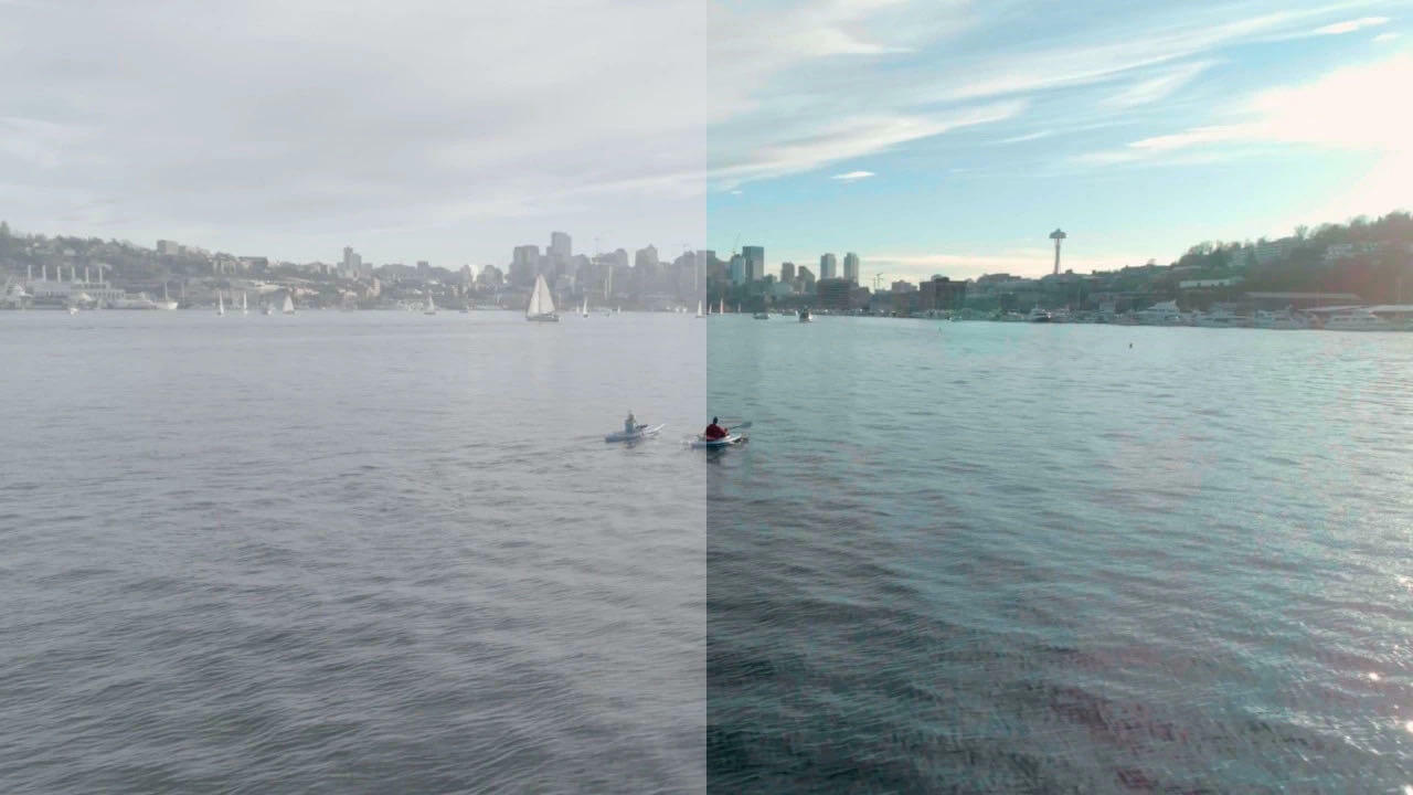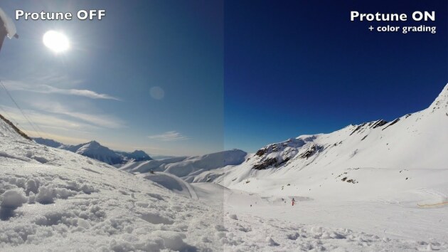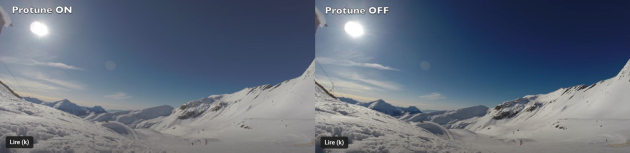 Sur les cameras Gopro, observons le voile « gris » avec la fonction Protune d'activé.