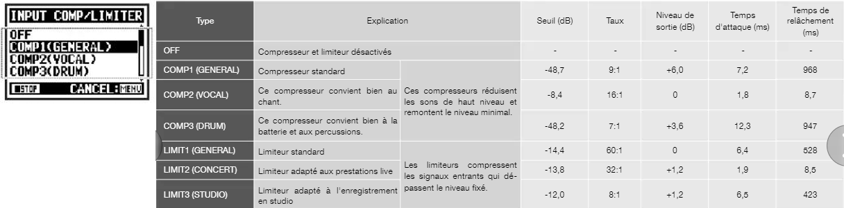 Compression : pour diminuer les peaks du signal pour avoir tout au meme niveau sonore d'audition (ex : quelqu'un qui murmure, puis qui crie) | |||||||