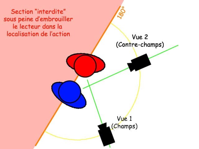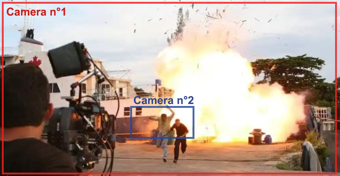 Exemple de situation nécessitant 2 cameras : la discussion dans le film « Quand Henri rencontre Sally » au moment où lui, il parle, et elle, elle simule un orgasme.