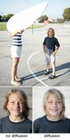 Placez entre le soleil et le sujet une feuille diffusant la lumière