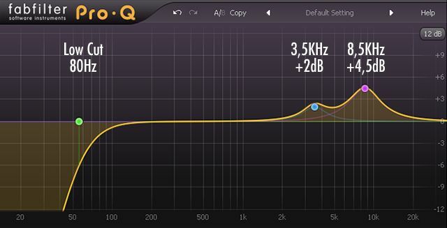 Ex : pour la voix humaine, mettre un filtre coupe bas (rien avant 80Hz) et apporter de la brillance dans les hautes fréquences pour que la voix se détache.