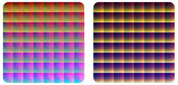 Ci-dessous un aperçu de deux LUT (2 ambiances : année 80 et Horreur) :